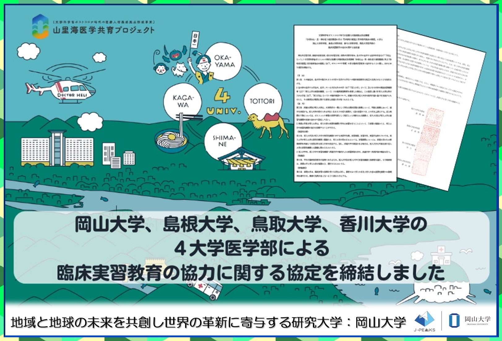 岡山大学、島根大学、香川大学、鳥取大学の4大学医学部が臨床実習教育の協力に関する協定を締結~多様な地域医療ニーズに対応できる医師育成を目指して~