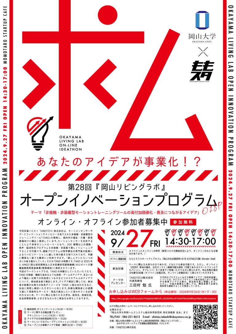 ・【岡山大学】第14回「岡山リビングラボ」オープンイノベーションプログラム「自治体のヘルスケア・アプリの高付加価値化や地域での普及につながるアイデア」を開催しました