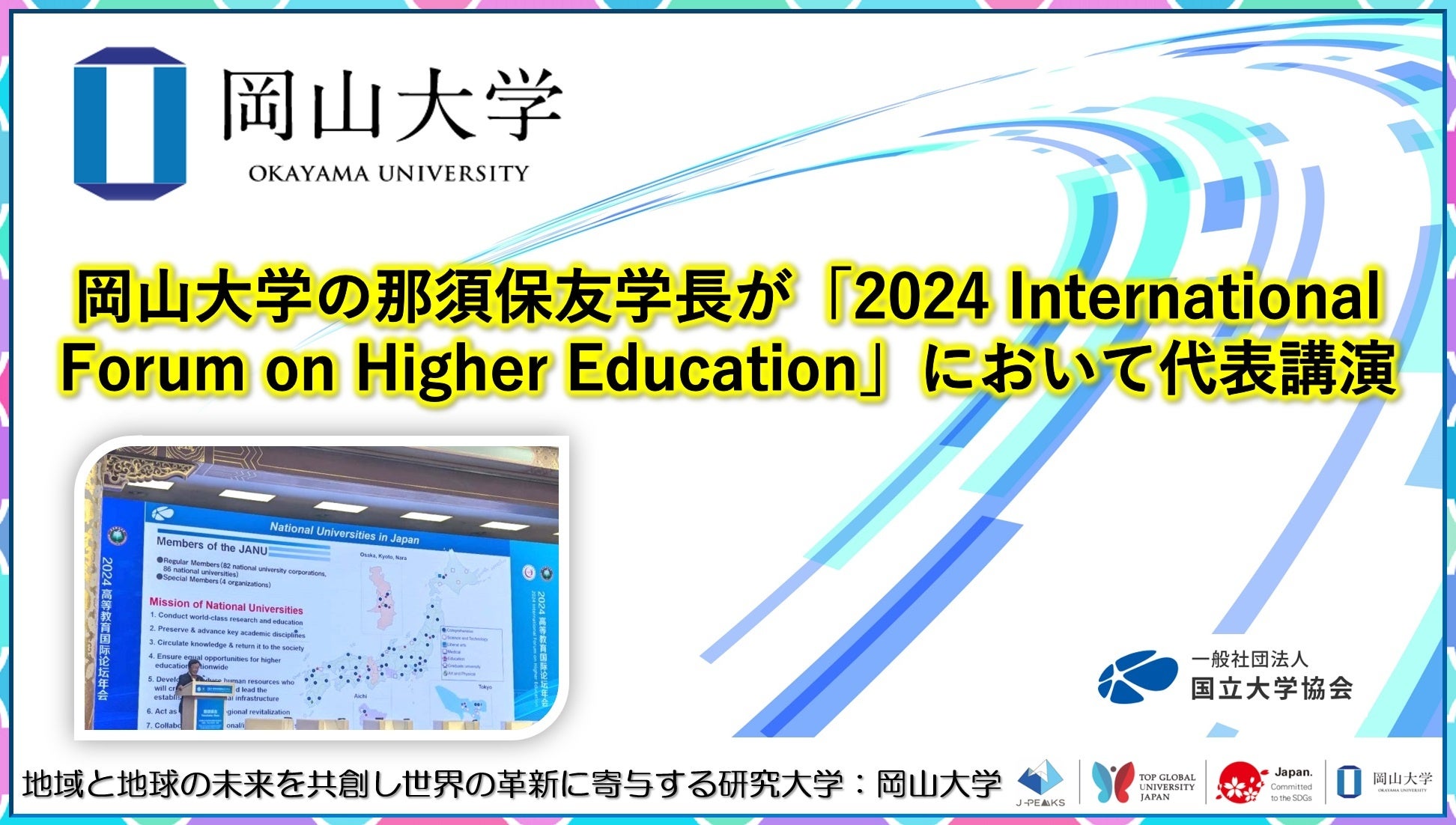 国立大学法人岡山大学(本部:岡山市北区、学長:那須保友)の那須保友学長が、2024年10月13日に中国・北京で開催された中国高等教育学会主催「2024 International Forum on Higher Education」に、日本全国の国立大学法人等が会員である一般社団法人国立大学協会の代表として参加し、講演を行いました。