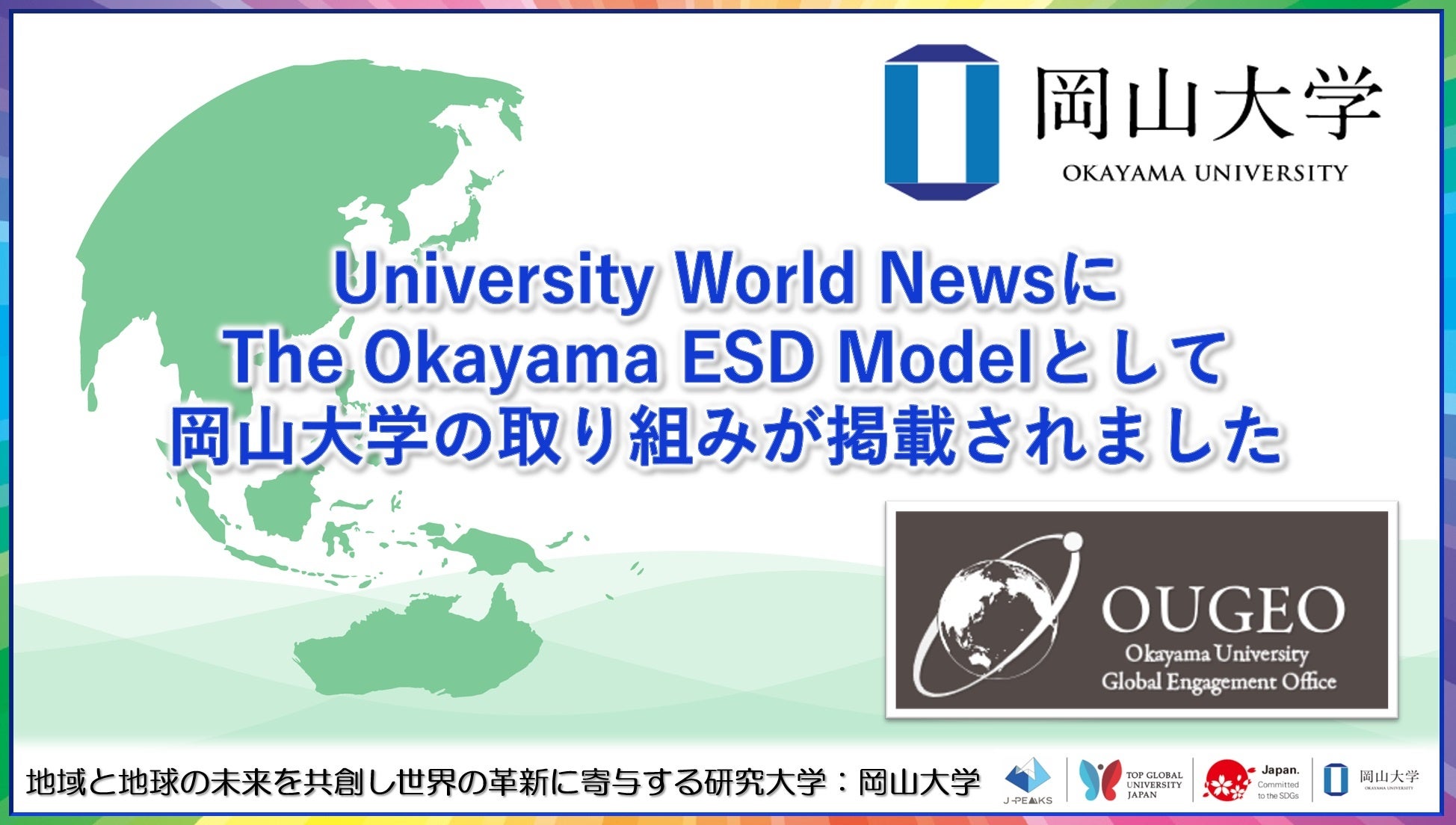 記事では、本学の持続可能な開発のための教育(ESD)の世界的な拠点としての「岡山ESDモデル(The Okayama ESD Model)」などの取り組みを特集、SDGsと大学にとってESDが果たす役割について議論しています。