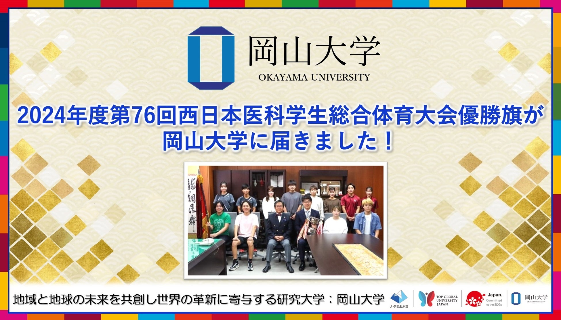 「第76回西日本医科学生総合体育大会(通称:西医体)」で総合優勝を果たした岡山大学へ、大会優勝旗と優勝カップが届きました。