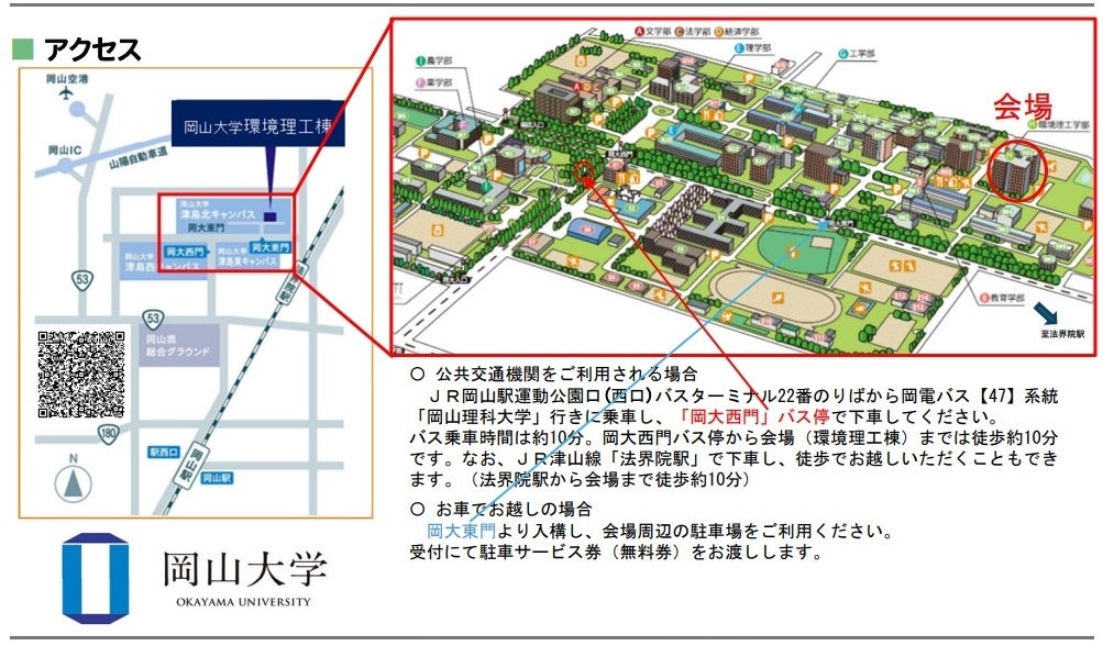 〒700-8530 岡山県岡山市北区津島中3丁目1番1号 岡山大学津島キャンパス