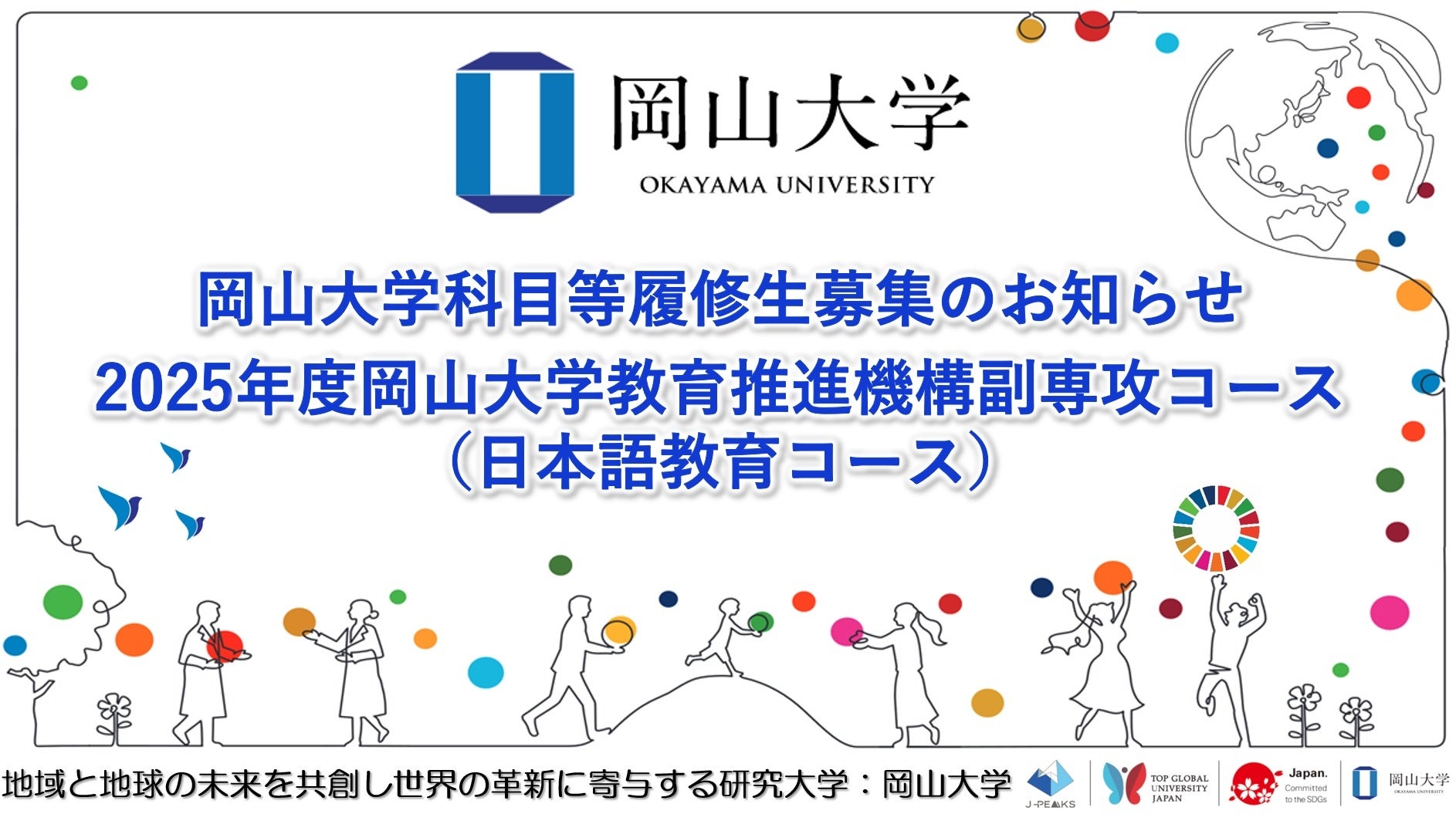 国立大学法人岡山大学(本部:岡山市北区、学長:那須保友)の教育推進機構副専攻コース(日本語教育コース)の、2025年度科目等履修生の募集を開始します。