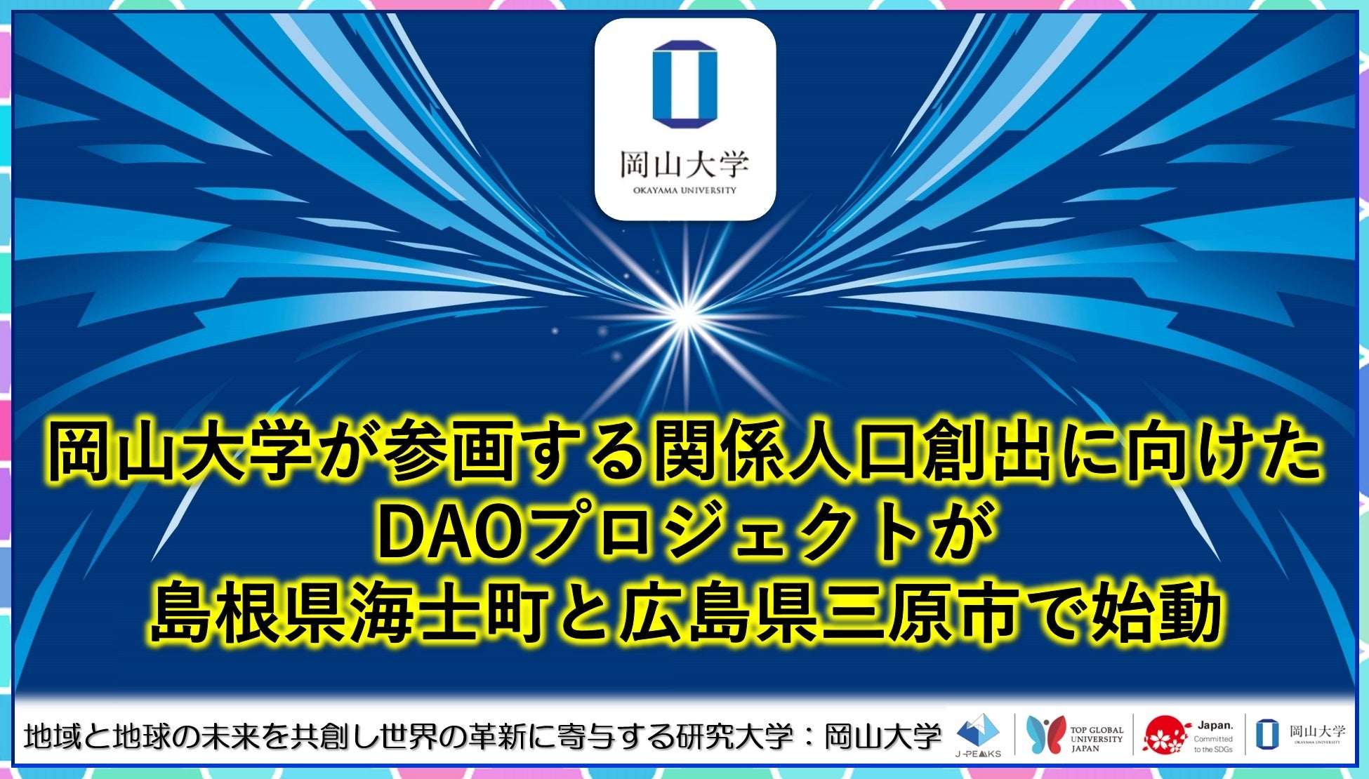 国立大学法人岡山大学(本部:岡山市北区、学長:那須保友)は本学が参画し、島根県海士町および広島県三原市においてDAO(分散型自律組織)プロジェクトを、2024年11月18日から開始しました。