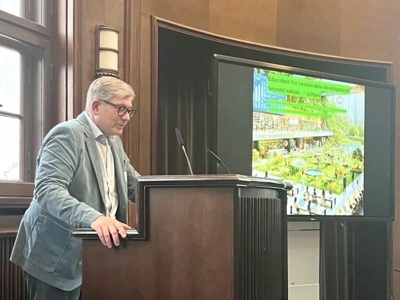 この会議は持続可能な教育の実践を強化するための貴重な洞察やツールを得るだけでなく、気候変動や教育学の分野の専門家によるプレゼンテーションとその後の哲学的考察や意見交換を通して教育システムが社会課題にどのように寄与しているかを分析し、公平な解決策を探りながら、分野を超えた協力関係を強化することを目的として、主にドイツの大学学長を対象としており、今回は「持続可能な開発のための教育(ESD)