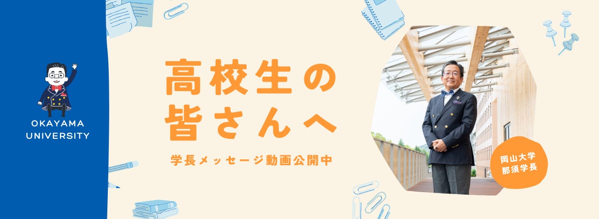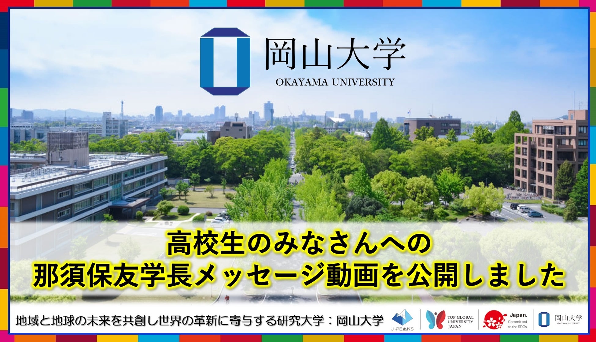 国立大学法人岡山大学(本部:岡山市北区、学長:那須保友)は、2024年12月16日に那須保友学長から高校生の皆さんへのメッセージ動画をYouTube「岡山大学チャンネル」で公開しました。
