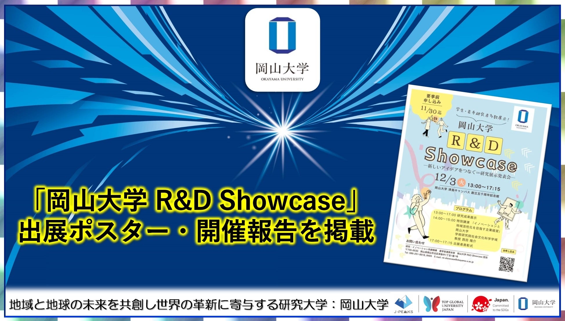 国立大学法人岡山大学(本部:岡山市北区、学長:那須保友)研究・イノベーション共創機構は、2024年12月3日に開催した「岡山大学 R&D Showcase」の出展ポスターや開催報告を、同機構のウェブサイトに12月19日に公開しました。