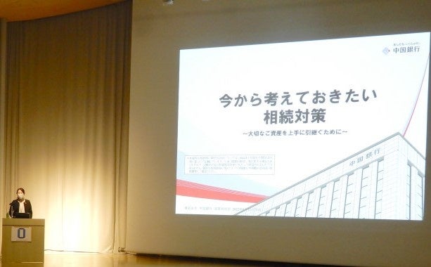 第2部では、中国銀行コンサルティング営業部ファイナンシャルアドバイザーの安井杏奈氏が、『今から考えておきたい相続対策』と題し、家族構成等から事前の遺産分割対策が必要なケースや対策のポイント、相続財産評価対策などについてクイズを交えて分かりやすく解説しました。