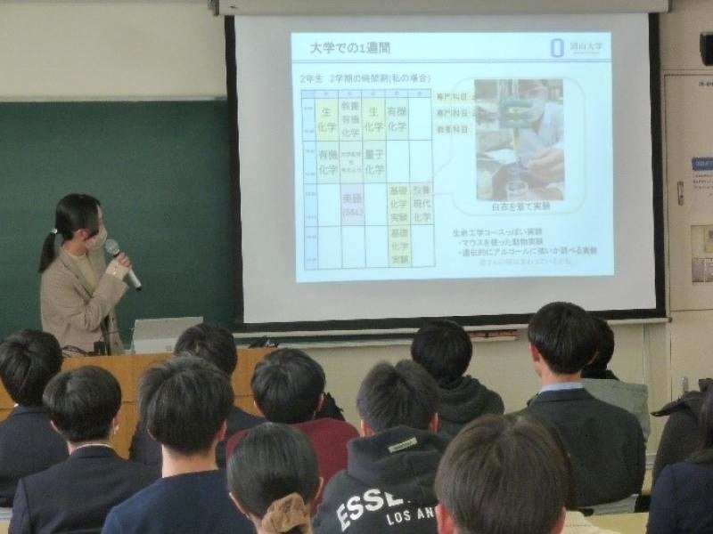 国立大学法人岡山大学(本部:岡山市北区、学長:那須保友)の工学部は2025年1月29日、2025年度学校推薦型選抜Ⅰの入学予定者(合格し、入学手続きを完了した方)を対象に入学前スクーリングを開催しました。当日は174人の入学予定者が参加し、大学での学びや生活について理解を深めました。