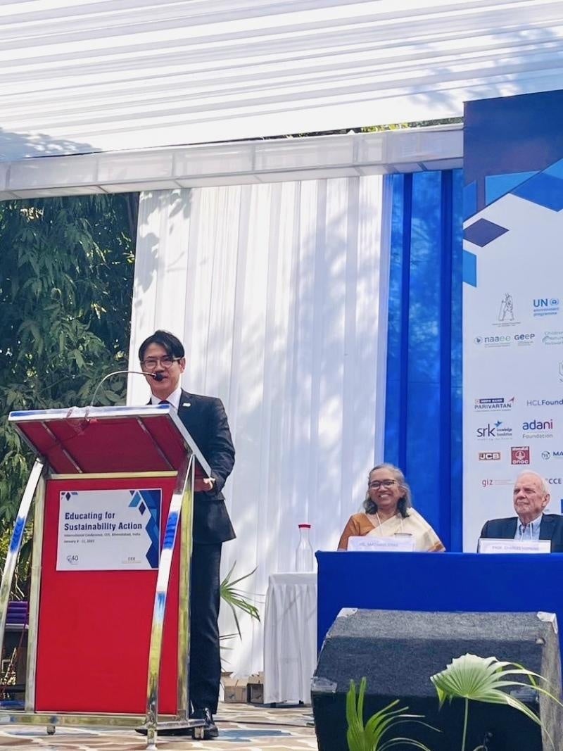 2025年1月9~11日、インドの環境教育を担う政府系機関であるインド環境教育センター(Centre for Environment Education: CEE)の創立40周年を記念して、インド政府並びに国連環境計画(UNEP)やユネスコ(UNESCO)をはじめとする国連機関らの協力のもと、アーメダバード(インド)にあるCEE本部で国際会議が開催され、横井篤文副学長(グローバル・エンゲージメント担当)・ユネスコチェアホルダーが招聘参加しました。