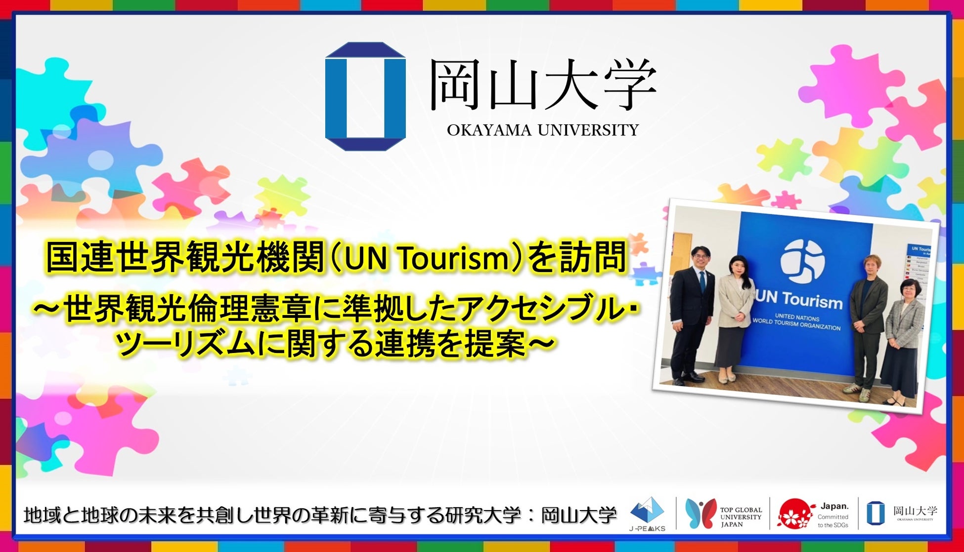 国立大学法人岡山大学(本部:岡山市北区、学長:那須保友)は、2025年5月27日、横井篤文副学長(グローバル・エンゲージメント担当)・ユネスコチェアホルダーおよび学術研究院共通教育・グローバル領域の池谷航介准教授が、奈良市にある国連世界観光機関(UN Tourism)アジア太平洋地域事務所を訪問しました。