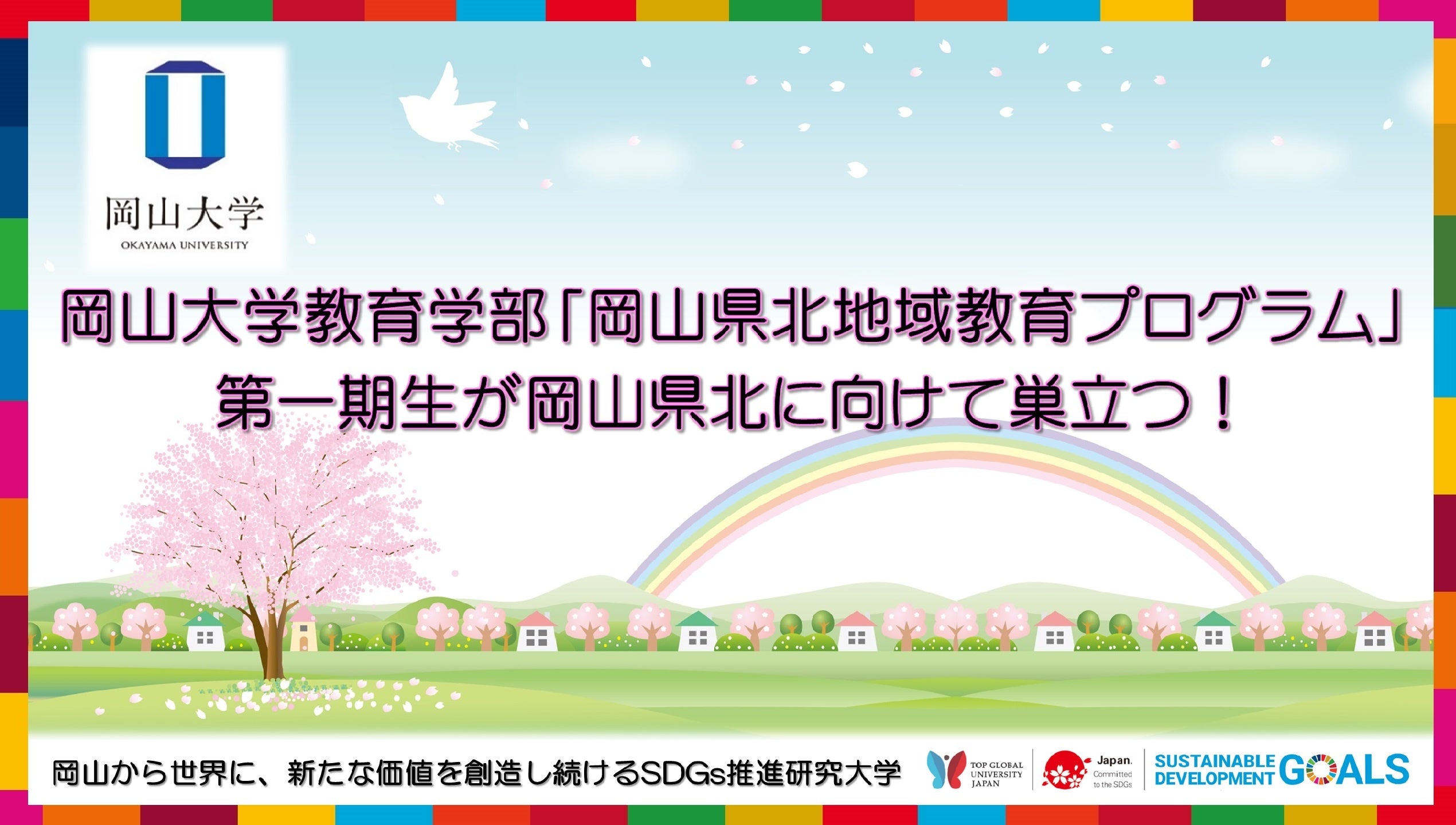 国立大学法人岡山大学(本部:岡山市北区、学長:槇野博史)教育学部では、SDGsの理念を踏まえ、学校と地域双方の持続可能な活性化を志向していく岡山県北地域の教員を養成するため、2018年度より「岡山県北地域教育プログラム」を導入しています。その第一期生が2022年3月25日、卒業を迎えました。