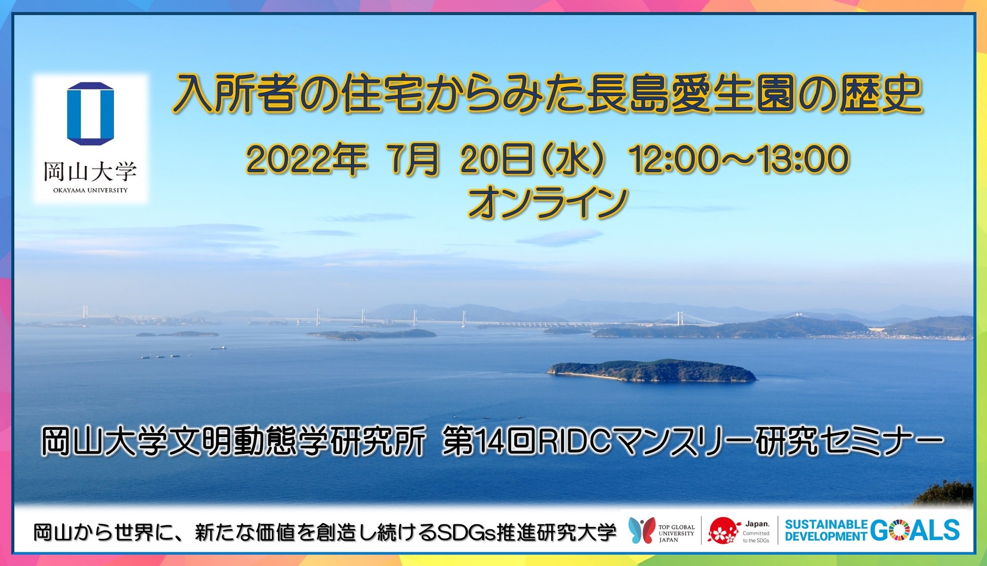 - 【岡山大学】文明動態学研究所「入所者の住宅からみた長島愛生園の歴史」〔7/20,水 オンライン〕
