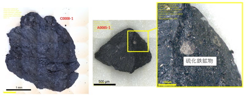 - 有機物は試料に普遍的に存在し、これらは宇宙線および太陽風の照射による宇宙風化を被り、小惑星表面のアルベド特性を決定している。