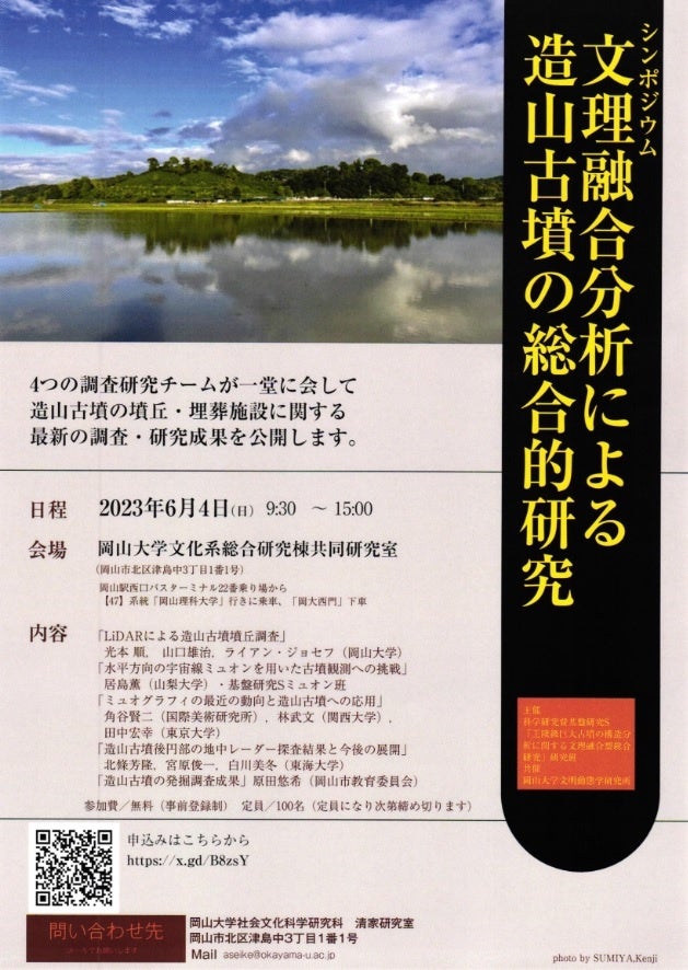 科学が発達し、古墳調査の新たな研究が試みられています。国立大学法人岡山大学(本部:岡山市北区、学長:那須保友)学術研究院社会文化科学学域の清家章教授が代表を務める科研費研究班では、岡山市造山古墳を主たるフィールドの一つとして、文理の研究者が集い新たな古墳調査方法と分析方法を模索してきました。