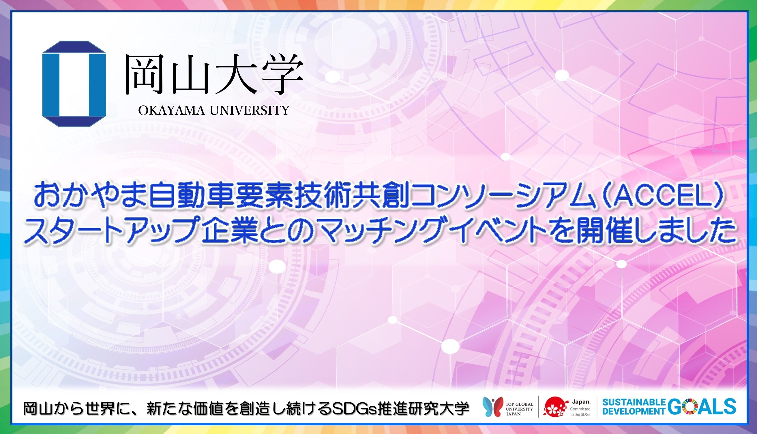 国立大学法人岡山大学(本部:岡山市北区、学長:那須保友)が事務局を務める「おかやま自動車要素技術共創コンソーシアム(ACCEL)」は2023年5月11日、総会併催イベントとして「スタートアップ企業とACCEL会員とのマッチングイベント」を本学津島キャンパスで開催しました。