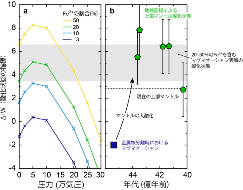 - 形成直後の地球マントルの酸化状態は当時の地球表層が生命に適した環境であったかを推定する上で重要であるがよくわかっていなかった。