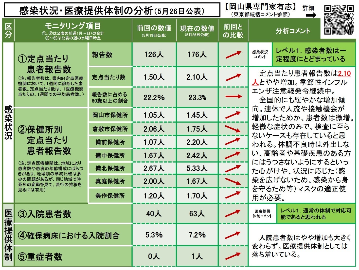 ◆感染状況・医療提供体制の分析〔2023年 5月 26日(金)現在〕