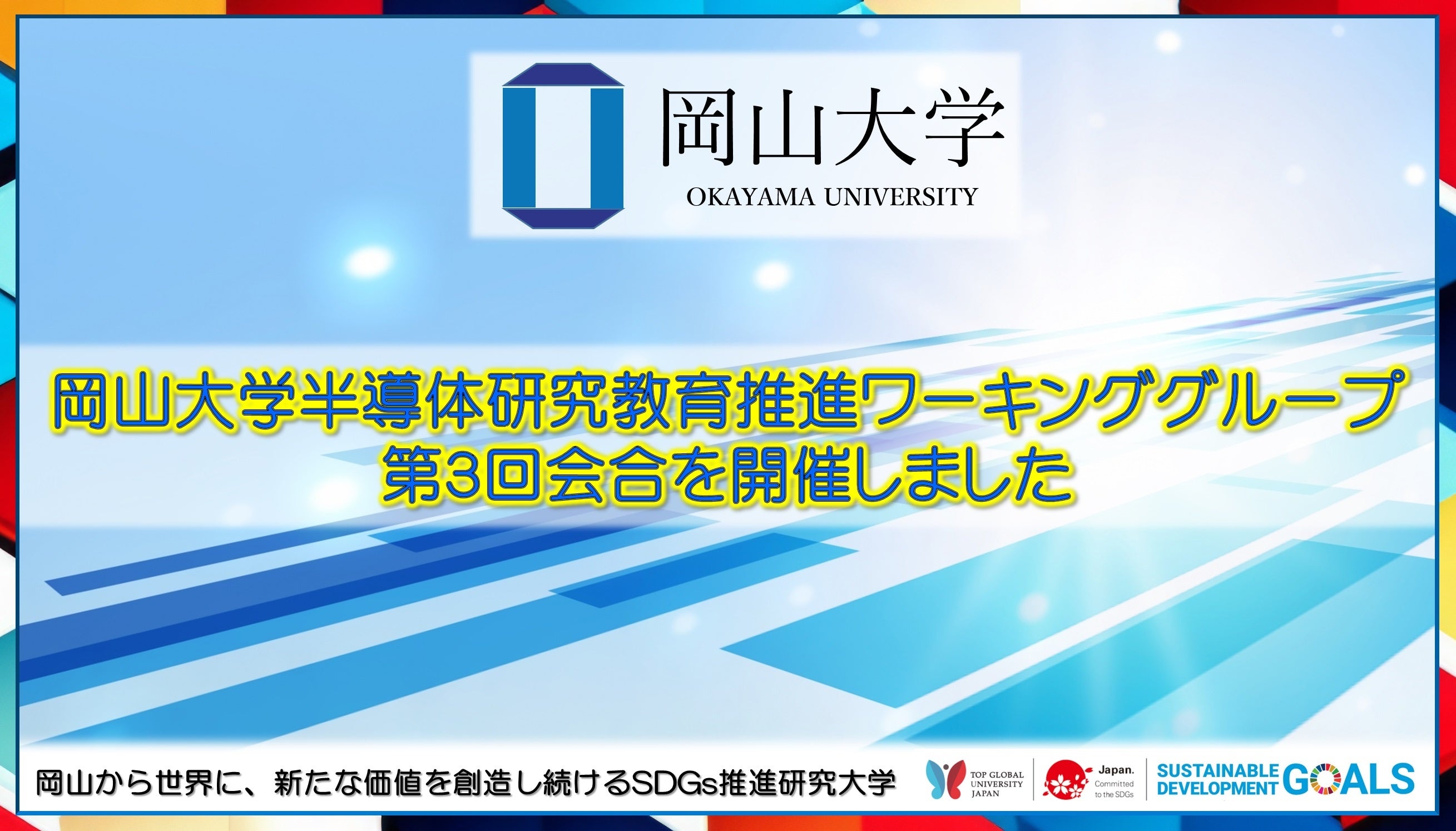 国立大学法人岡山大学(本部:岡山市北区、学長:那須保友)は、2023年5月26日に「岡山大学半導体研究教育推進ワーキンググループ(WG)第3回会合」を本学津島キャンパスの本部棟で開催しました。