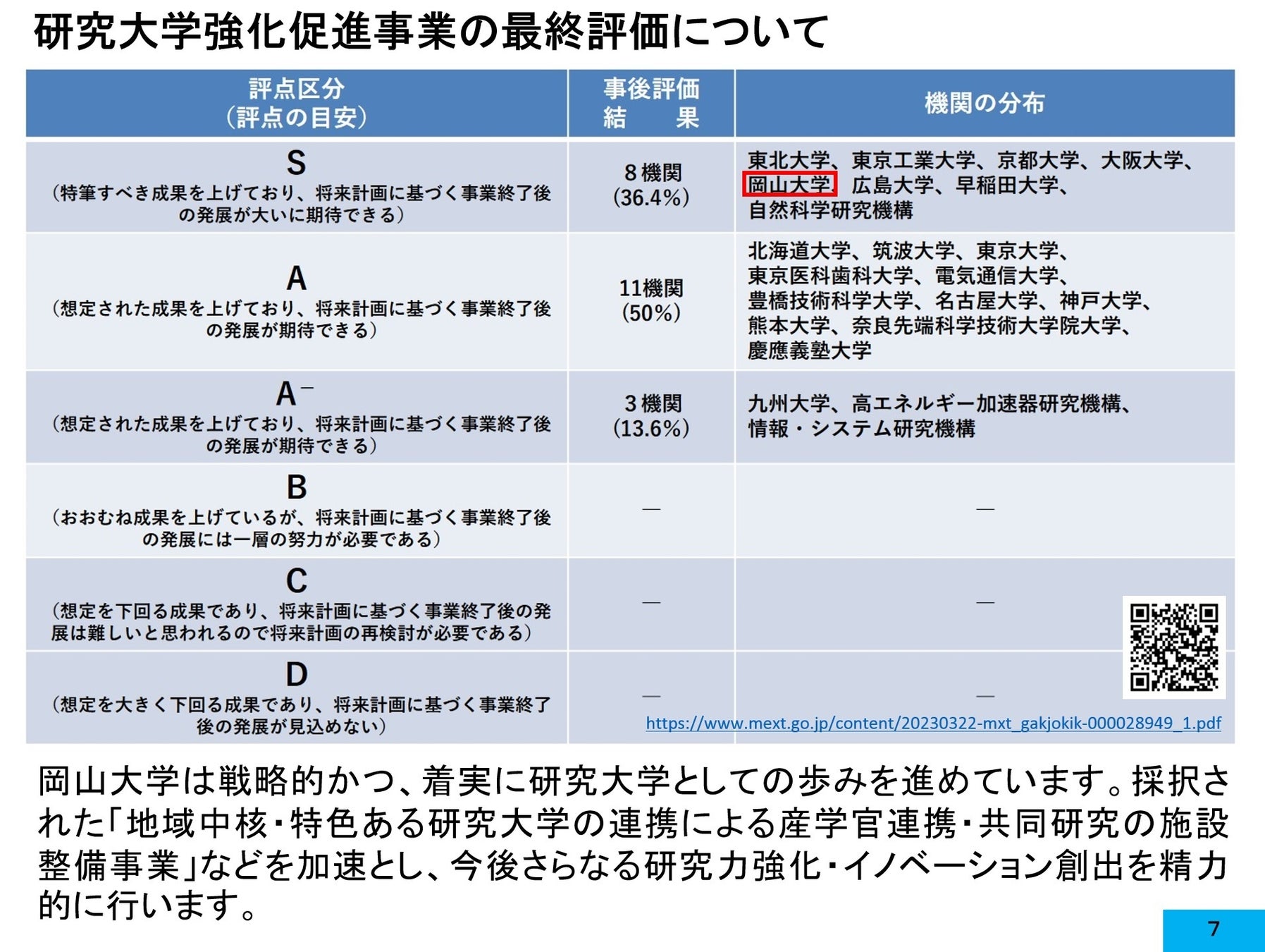 ・「研究大学強化促進事業」の事後評価について(文部科学省)