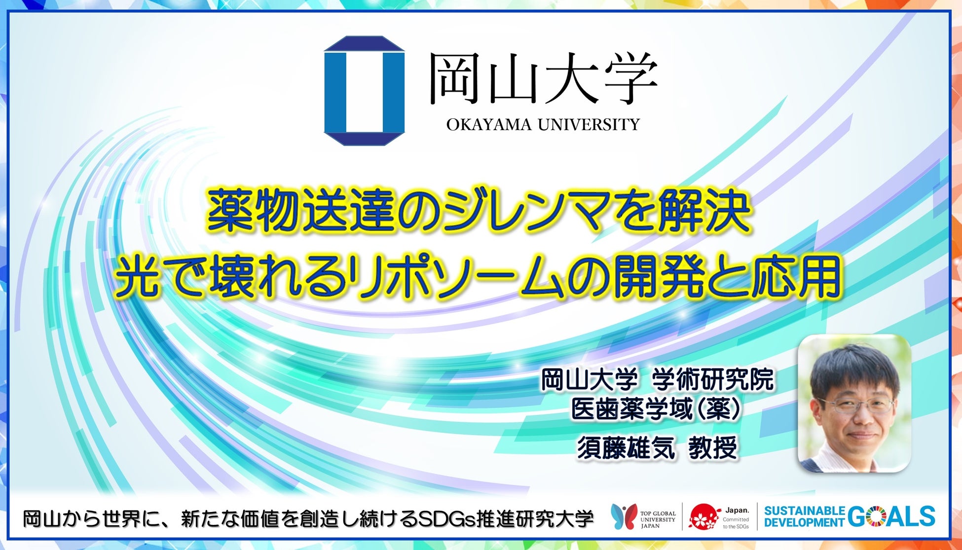 国立大学法人岡山大学(本部:岡山市北区、学長:那須保友)の学術研究院医歯薬学域(薬)の須藤雄気教授と同大学院医歯薬学総合研究科・博士前期課程(薬)の恒石泰地氏(令和4年卒)は、北海道大学大学院薬学研究院の山田勇磨教授らと共同で、光受容タンパク質であるロドプシンを利用して、緑色の光で壊れるリポソームを開発し、薬物送達に応用できることを示しました。