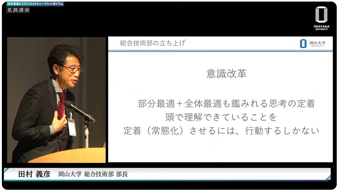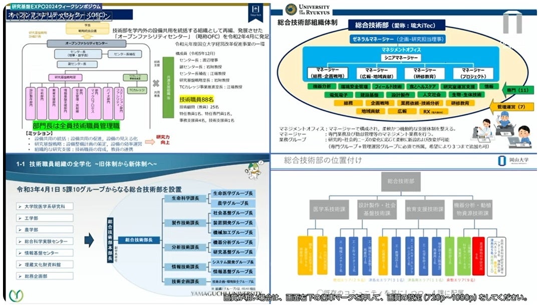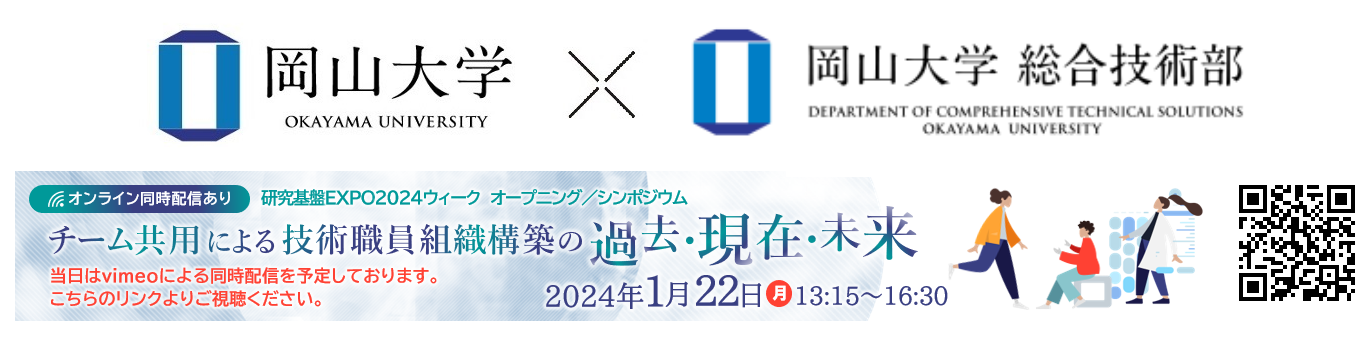 岡山大学総合技術部主催 研究基盤EXPO2024岡山大学シンポジウム「チーム共用による技術職員組織構築の過去・現在・未来」(YouTube 3:04:27)