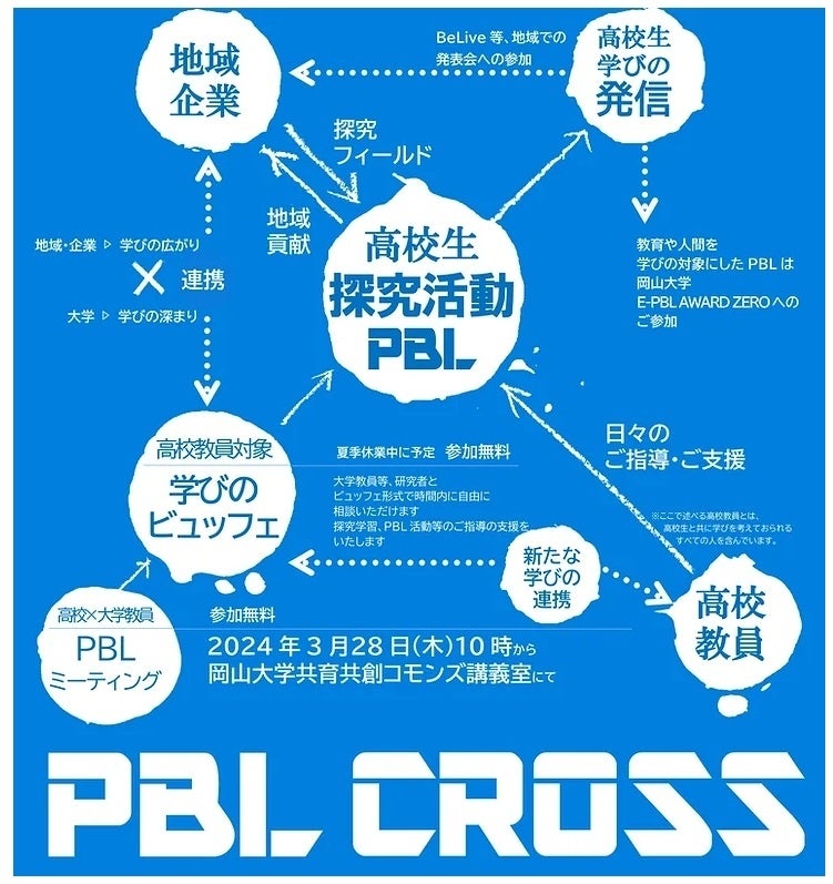 国立大学法人岡山大学(本部:岡山市北区、学長:那須保友)大学院教育学研究科は、2024年3月28日に本学津島キャンパスの共育共創コモンズ(OUX)において、高校の先生方や地域や企業の皆様と本学大学院教育学研究科の教員がこれからの高校生の学びの在り方を1年間を通して考える「PBL