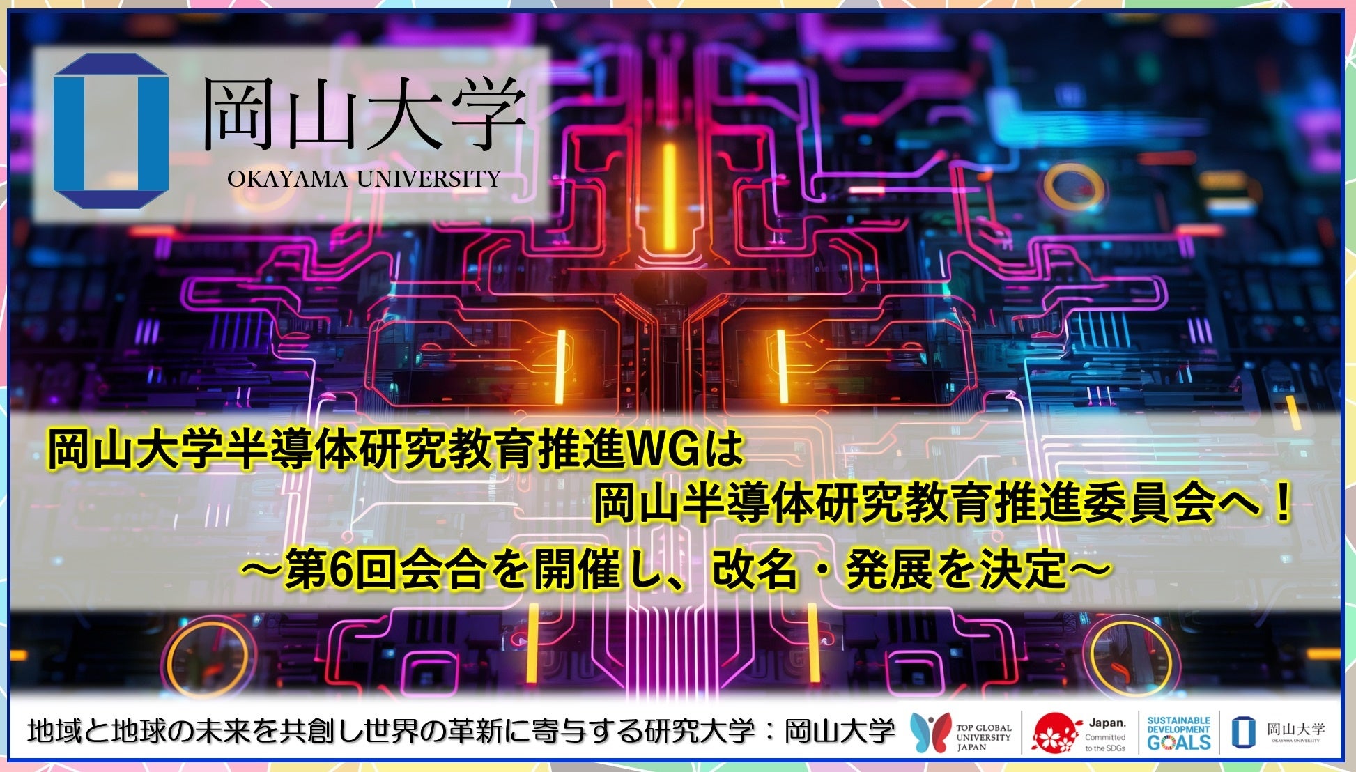 国立大学法人岡山大学(本部:岡山市北区、学長:那須保友)は2024年3月12日、岡山大学半導体研究教育推進ワーキンググループ(WG)の第6回会合を、会場とオンラインを併用するハイブリッド形式で開催しました。