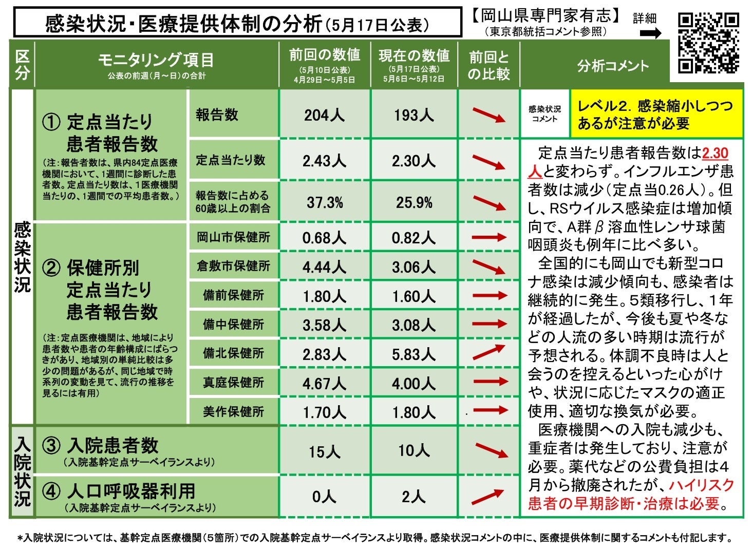 ・岡山県内の感染状況・医療提供体制の分析について(2024年5月9日現在)