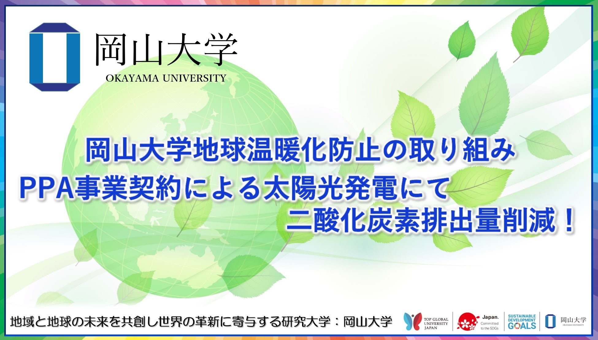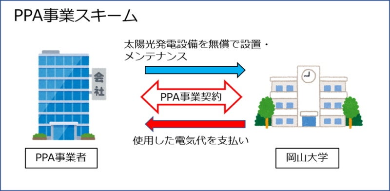 岡山大学地球温暖化防止の取り組み PPA事業契約による太陽光発電にて二酸化炭素排出量削減!