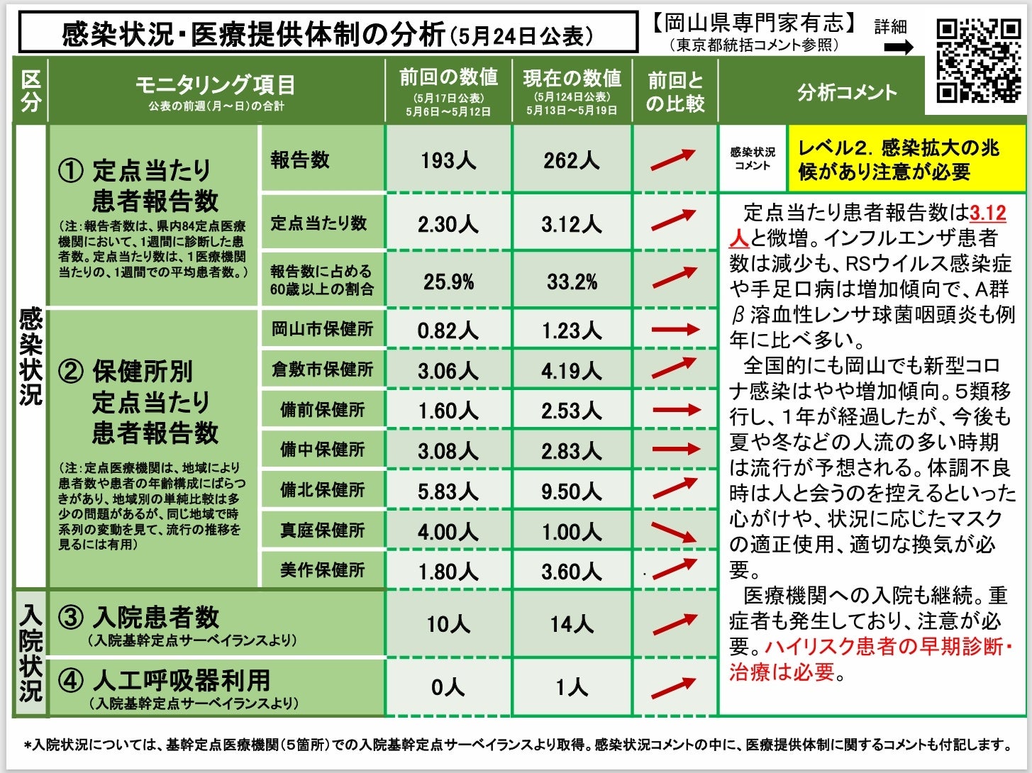 ・岡山県内の感染状況・医療提供体制の分析について(2024年5月17日現在)