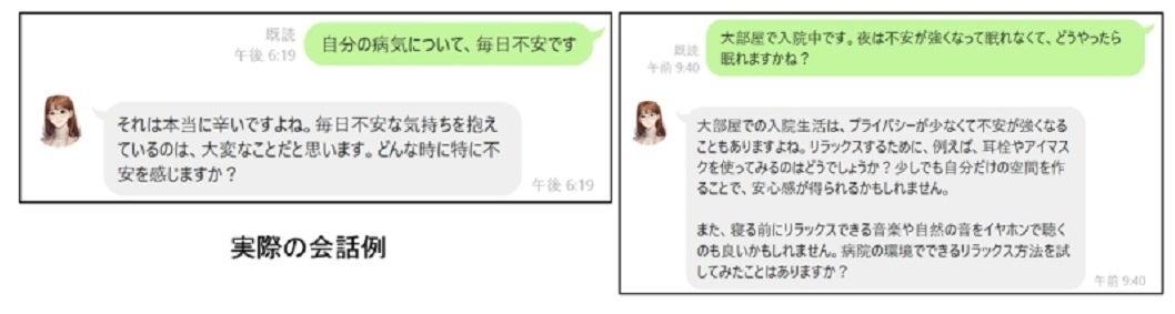 AIシステムは、患者さんのさまざまな悩みや気持ちに寄り添い、孤独感や不安の軽減を目指します。