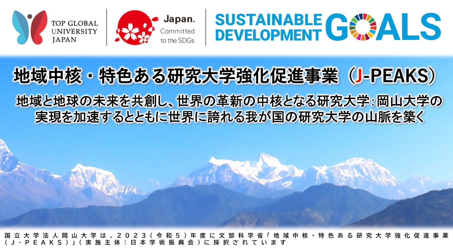 岡山大学 文部科学省「地域中核・特色ある研究大学強化促進事業(J-PEAKS)」に採択~地域と地球の未来を共創し、世界の革新の中核となる研究大学:岡山大学の実現を加速とともに世界に誇れる我が国の研究大学の山脈を築く~