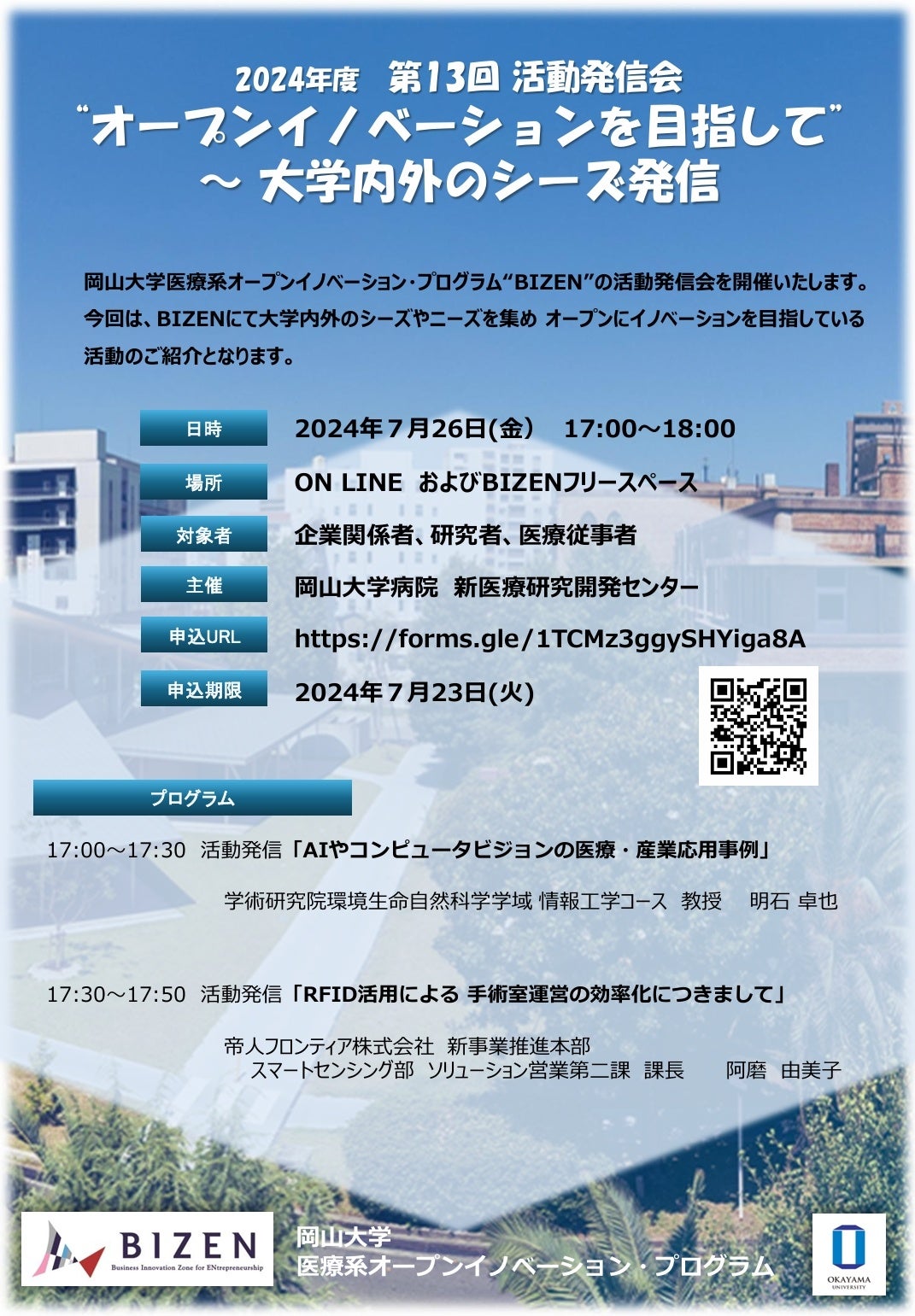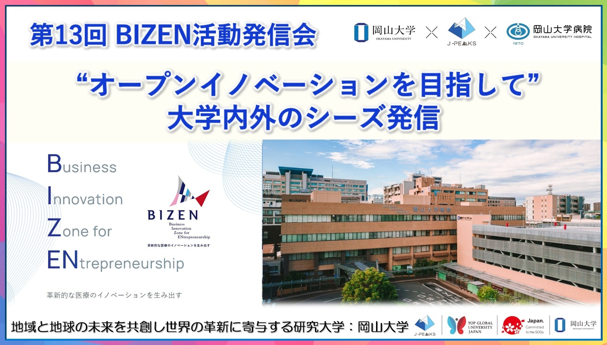 ・【岡山大学】岡山大学病院 医療系オープンイノベーション・プログラム「第7回BIZEN活動発信会」の内容動画を期間限定で公開