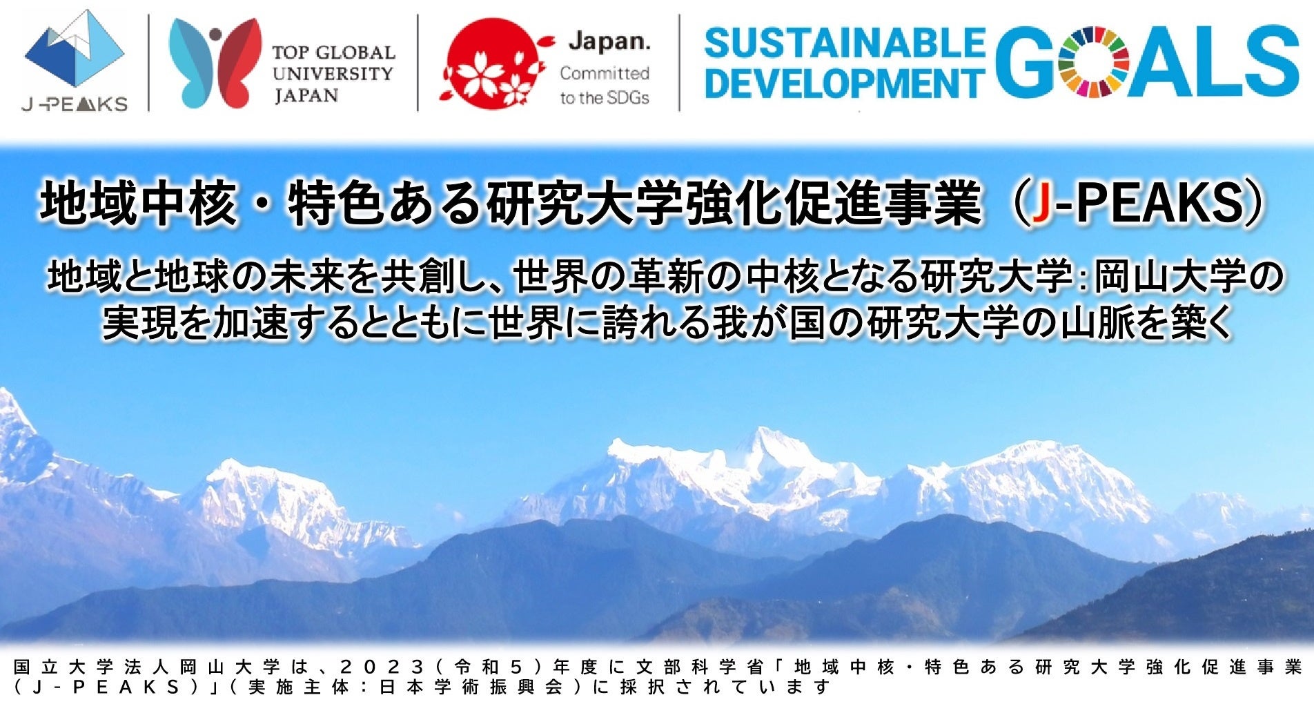 岡山大学 文部科学省「地域中核・特色ある研究大学強化促進事業(J-PEAKS)」に採択~地域と地球の未来を共創し、世界の革新の中核となる研究大学:岡山大学の実現を加速とともに世界に誇れる我が国の研究大学の山脈を築く~