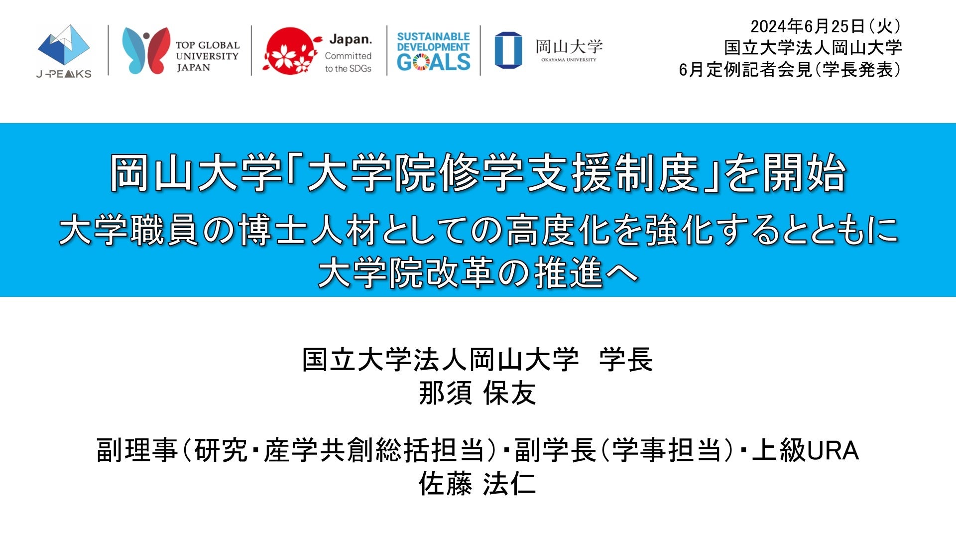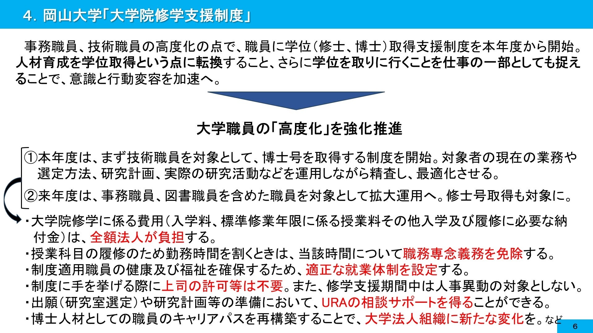 岡山大学「大学院修学支援制度」を開始~大学職員の博士人材としての高度化を強化するとともに大学院改革の推進へ~