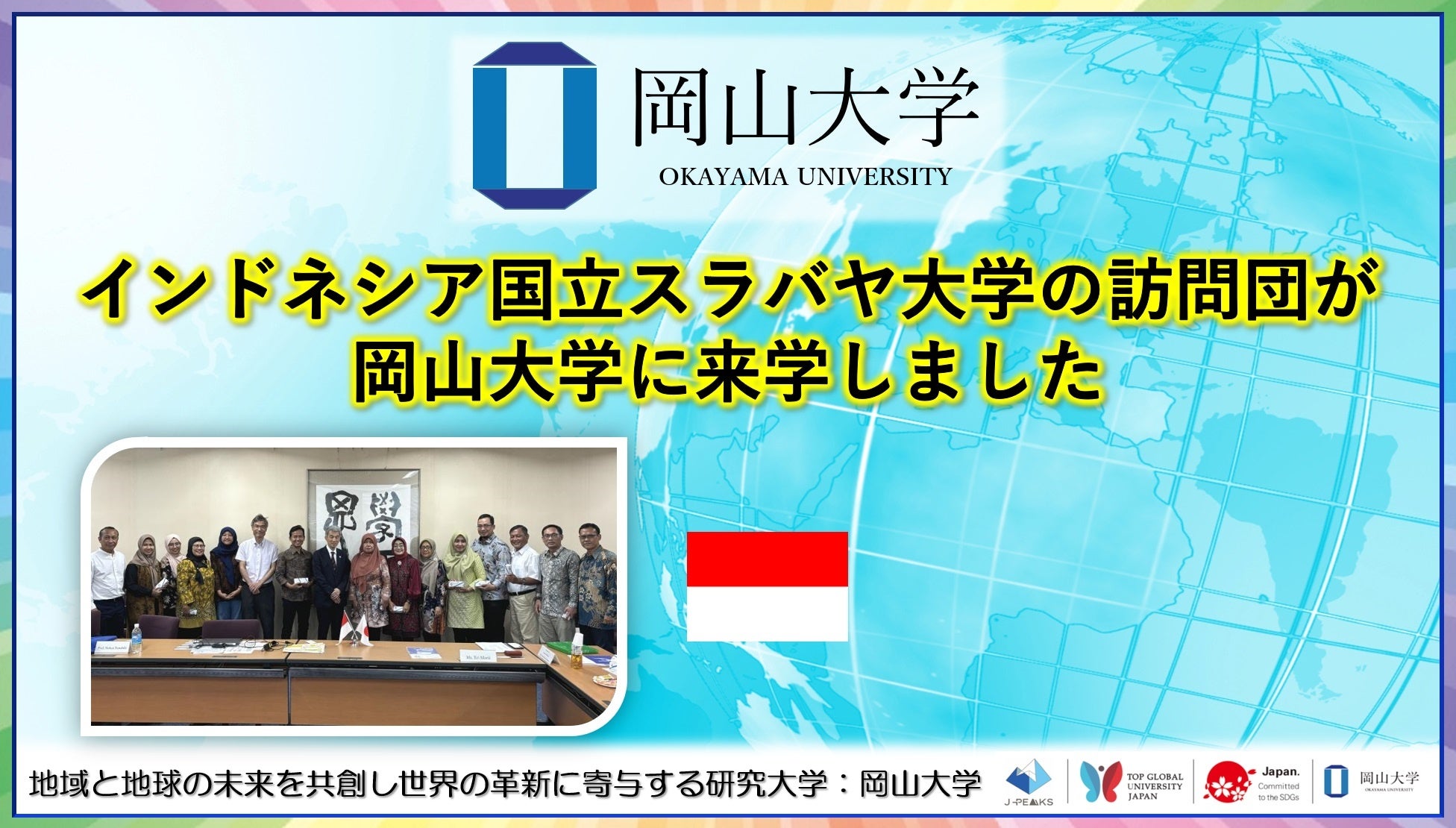 今後も、部局間協定校である国立スラバヤ大学とのさらなる交流が期待されます。引き続き、地域中核・特色ある研究大学:岡山大学の取組にご期待ください。