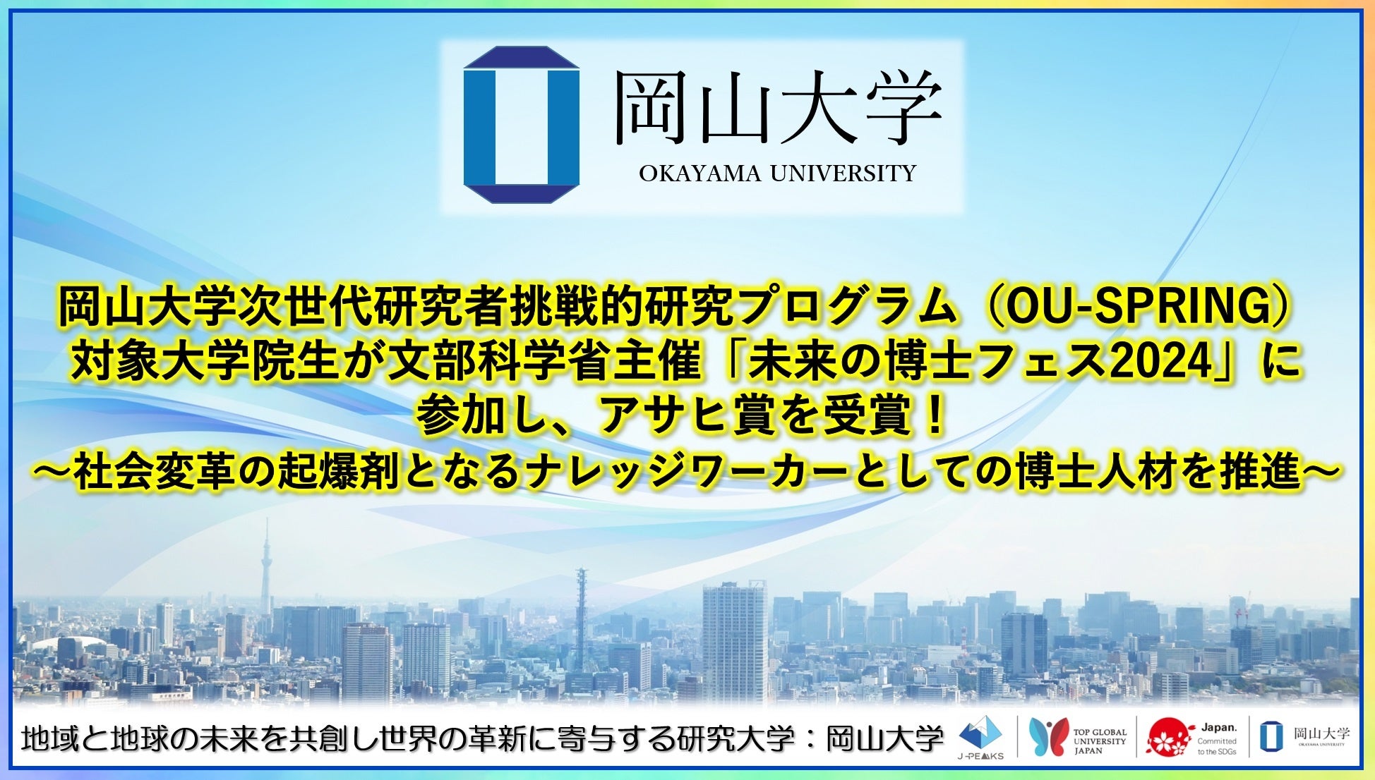 ・【岡山大学】JST「次世代研究者挑戦的研究プログラム(SPRING)」に採択 ~高度な知識と未来思考で社会変革を導く博士人材育成プログラム(OU-SPRING)を実施へ~